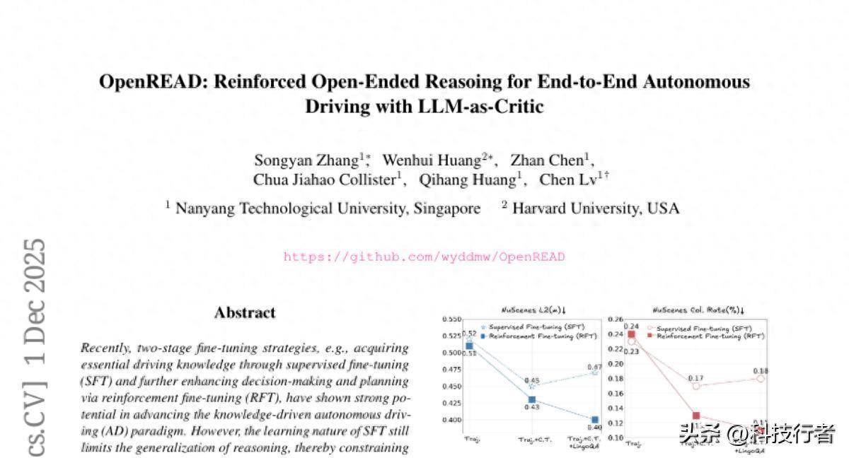 这项由新加坡南洋理工大学张松岩、陈展等研究人员以及哈佛大学黄文慧共同完成的突破性研究,发表于2025年12月1日的计算机视觉领域顶级会议论文集中,论文编号为arXiv:2512.01830v1。有兴趣深入了解技术细节的读者可以通过该编号查询完整论文。这项名为OpenREAD的研究首次让自动驾驶AI具备了真正的思考和推理能力,就像训练一个新手司机不仅要教他操作方向盘,还要教他理解复杂路况背后的逻辑一样。